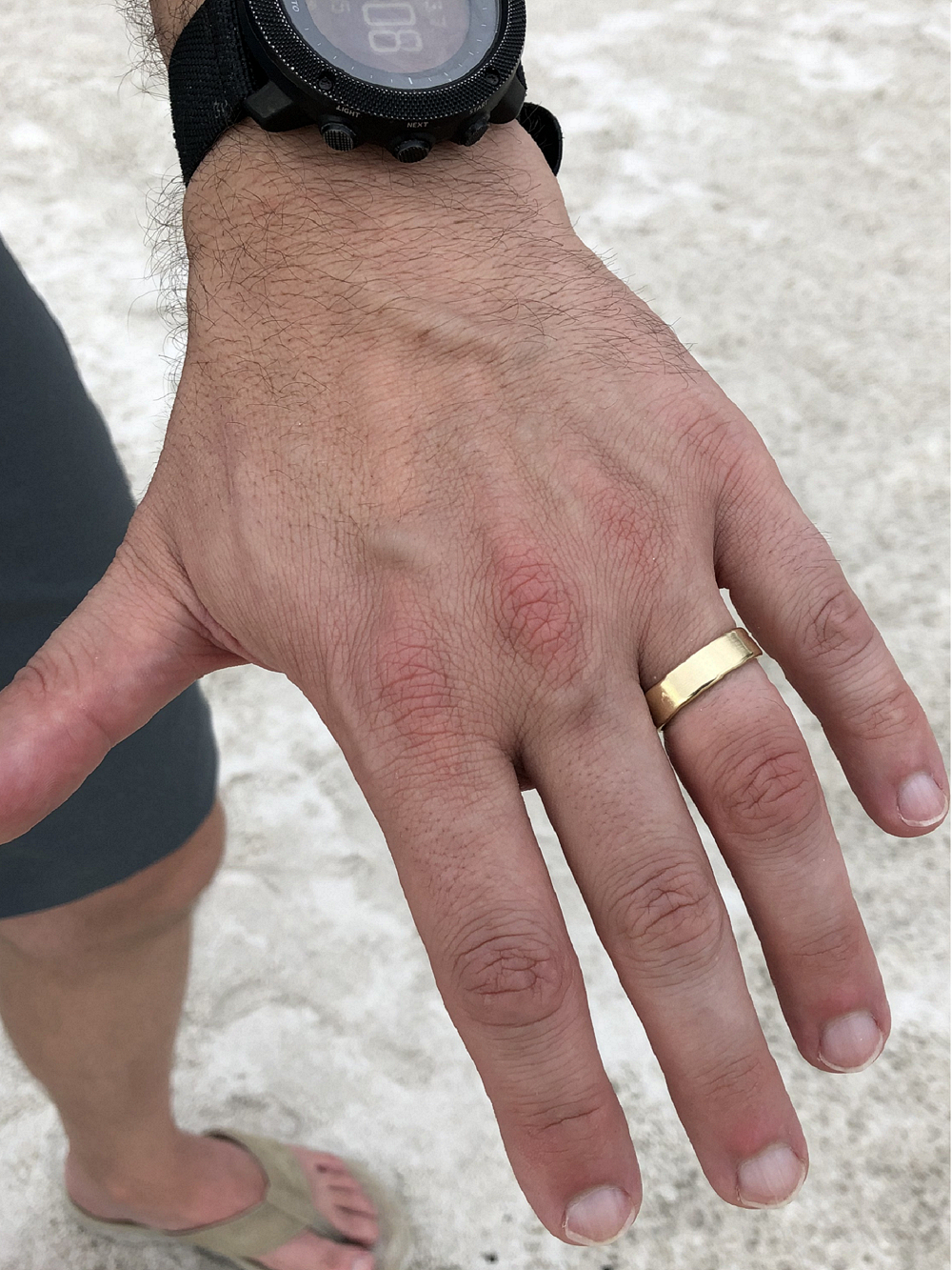 Search Areas: Beaches or sandy areas, private residences (lawns, sand, silt/clay, gravel), and very shallow water (<2 ft).